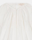 The Irisa Blouse in ivory is cut from 100% organic woven cotton. Tone-on-tone embroidery and light gathers add texture. A round neck with a small button keeps the line clean. Frilled sleeve seam and elastic cuffs finish the fit. The relaxed shape allows movement and layers easily. Curated by CO LABEL for natural fibre and everyday ease.