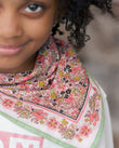 The Bonton cotton scarf is cut from light, soft-washed 100 % cotton gauze. Six prints—winter birds, meadow florals, bandana blue, leopard spot, pink bloom, and black-bird green—add colour with a single knot. Square shape folds at the neck, ties in hair, or secures to a bag through all seasons. Curated by CO LABEL for playful detail and easy styling year-round.