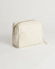 Aiayu organic-cotton wash bag with a wide zip and neat, piped edges. The 25 × 17 cm size fits toothbrush, creams and a hairbrush; stands steady on the sink and slips into a tote. Good for school trips, swim lessons, and weekends away. Chosen by CO LABEL for a simple shape that keeps order in shared bathrooms and wears in nicely. 100% GOTS-certified organic Chetna cotton.