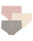 Fine pointelle bomulds trusser til piger fra franske PETIT BATEAU, lidt store i størrelsen. Pakken indeholder 3 stk, grå, rose og ecru.