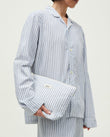 Aiayu Organic-cotton toiletry pouch with zip closure. Cotton-lined for light structure and easy wipe-clean care. Opens wide and stands on a sink; slips neatly in a tote or carry-on. Works for make-up, small toiletries, or cables and pens. Chosen by CO LABEL for its simple, useful shape and undyed “Pure” cotton that feels honest and ages well.