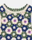 A charming hand-crocheted layer in 100% cotton knit, pieced from granny-flower squares in cream, forest, cobalt and violet with a sweet bobble-scallop edge and ribbed hem; sleeveless and slightly cropped for easy slip-on styling over blouses, tees or dresses, adding artisanal texture and color without bulk for playdates or parties — curated by CO LABEL for craftsmanship, playful palette, and everyday layering.