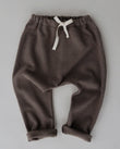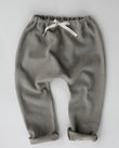 Relaxed trousers in soft warm-cotton knit, shaped with a dropped crotch to fit nappies with ease. An elastic waist and cotton drawstring adjust the fit, while rolled cuffs allow room to grow. Designed in Copenhagen for cozy days at home or bundled in the pram on cooler days.